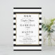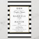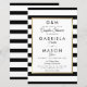 Con un clásico fondo de rayas en blanco y negro, esta elegante invitación de ducha de parejas de boda económica tiene un borde de lámina dorada falsa que enmarca los detalles de la ducha de su pareja en tipografía moderna y chic. Diseñado por Thisisnotme©