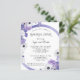 Invitación de cena de ensayo de boda con marco floral morado económico. Una buena relación calidad-precio alternativa más pequeña de 4,5 x 5,6 pulgadas con opción predeterminada de semi brillo que se recomienda para invitaciones y tiene un grosor similar al de una postal. La opción de satén es mucho más delgada.