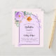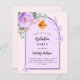Un fondo rosa pálido con un arco de color púrpura y violeta. Decorado con flores, rosas, verde eucalipto acuarelado y mariposas. Personalice y agregue un nombre y detalles de la fiesta.