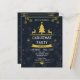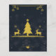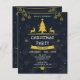 Invitación de fiesta de Navidad con copo de nieve dorado y azul marino.