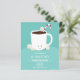 Invitación a una fiesta de Navidades económicos para un fiesta de chocolate caliente. Esta invitación de presupuesto incluye una sonriente jarra de cacao caliente con un bastón de caramelo y varios alegres malvaviscos. Todas las palabras se pueden personalizar. Este diseño también está disponible en un peso de papel más pesado (una invitación tradicional) en la colección. (La opción de papel satinado es muy delgada y se sugiere papel semi-brillante). Diseño vacacional de la fiesta de los Navidades de chocolate caliente Verde azulados de presupuesto | ©Melissa Patton - Artista/Ilustrador