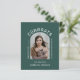 Elegantes felicitaciones de color verde oscuro a la escritura de tipografía de graduación BUDGET tarjeta de invitación de graduación asequible con una moderna foto en forma de arco y estilo moderno. ++++++++++++++++++++++++ LEA ESTO ANTES DE COMPRAR! Se trata de una tarjeta boda económica impresa en una hoja de papel (cada hoja tiene una tarjeta). ++++ Para obtener la mejor calidad de precio de la relación, nuestro consejo es elegir el tipo de papel semibrillante (es lo suficientemente grueso como para ser utilizado para papelería) ++++ Si necesita sobres, elija la OPCIÓN ENVELOPE. +++ Compruebe dos veces toda la información y la ortografía del texto porque recibirá exactamente lo que ve - nadie más comprobará nada antes de imprimir. ++++ Esta tarjeta está diseñada para el tamaño de 4,5" x 5,6". En el funda usted elige otro tamaño de la tarjeta y el texto sale de la página, todo debe ser corregido antes de añadir el producto al carrito. Por favor, pida ayuda al servicio de diseño en vivo.