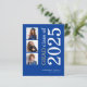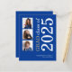 Una alternativa de valor por dinero BUDGET en un tamaño menor de 4,5 x 5,6" de peso semibrillante de 110 libras, que es de espesor similar al de una postal (sin embargo, no es adecuado para usar como postal). POR FAVOR, TENGA EN CUENTA QUE HAY UNA invitación por hoja. Foto del presupuesto 3 de la Invitación de Graduación Azul Real 2025. Una tipografía moderna y elegante y un diseño fotográfico múltiple, con texto grande girado y a la derecha en blanco y oro. Personalice fácilmente el resto del texto y reemplace las fotos de las plantillas con su propia orientación cuadrada.