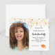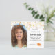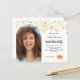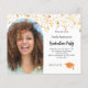 Agrega tu propia foto vertical del graduado. Un marco de foto con forma de arco. Un color de fondo blanco clásico, decorado con estrellas doradas falsas. Personaliza y agrega un nombre y detalles de la fiesta.