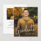 Una invitación de graduación con foto y guion moderno económico con fuente manuscrita y foto de retrato de sangrado total en la parte frontal con nombre y detalles de graduación. La parte posterior tiene una segunda foto con detalles de la fiesta. Haga clic en el botón de edición para personalizar este diseño.