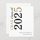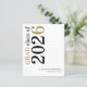Una alternativa de valor por dinero BUDGET en un tamaño menor de 4,5 x 5,6" de peso semibrillante de 110 libras, que es de espesor similar al de una postal (sin embargo, no es adecuado para usar como postal). POR FAVOR, TENGA EN CUENTA QUE HAY UNA por hoja. Invitación de Graduación en blanco de Budget Black Gold Text 2025. Diseño tipográfico moderno y elegante para anunciar la noticia de su graduado, con tipografía elegante de gran tamaño rotada y a la izquierda en la parte superior en negro y oro. Personaliza fácilmente el resto del texto. Incluyendo tu mensaje en la parte posterior