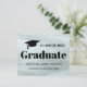 Envíe a su familia y amigos esta elegante tarjeta de invitación para graduación económica. Este diseño presenta una impresión de vidrio gris en el fondo con una tapa de graduación. Personalízalo con tu nombre, colegio y año.