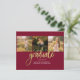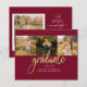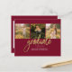 Graduación 4 Collage de fotos Script Burgundy Gold Budget tarjeta de Invitación. Personalizar esto fácilmente cambiando el texto y reemplazando las fotos con las tuyas. ¡Una forma moderna y moderna de anunciar tu graduación este año!