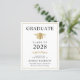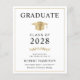 Invitación de graduación elegante y económica con una gorra dorada y tipografía moderna para el nombre del graduado, curso de clase, escuela, universidad o universidad, grado y especialidad o honores. La foto del grad llena la parte de atrás.