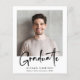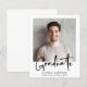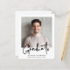 Invitación de graduación moderna y económica que incluye tu foto y "Graduado" en un elegante guión en negrita. Añada el nombre del graduado, el año escolar y el año de clase en una tipografía simple.