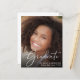 Una opción económica para anunciar los logros de tu graduado. Esta elegante invitación de graduación muestra su foto favorita con "Graduado" escrito en la parte superior en un elegante guión en blanco. Debajo, agregue su nombre, año escolar y de clase.