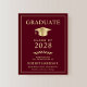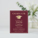 Elegante y económica invitación de graduación clásica de color rojo borgoña sin foto con una gorra de oro y tipografía moderna de oro claro para el nombre del graduado, año de clase, colegio, universidad o universidad, grado y especialidad o honores.