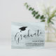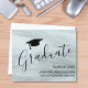 Envíe a su familia y amigos esta moderna y elegante tarjeta de invitación de graduación. Este diseño presenta una impresión de vidrio gris en el fondo con una tapa de graduación. Personalízalo con nombre, escuela y año.