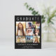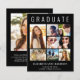 Elegante invitación de graduación negra y económica para celebrar el graduado que presenta "GRADUATE" en la cima de una gran tipografía blanca, un collage de siete fotos y su nombre, año de clase y escuela en tipografía blanca moderna. En la parte posterior, añada una foto adicional y un mensaje personalizado.