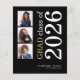 Una alternativa de valor por dinero BUDGET en un tamaño menor de 4,5 x 5,6" de peso semibrillante de 110 libras, que es de espesor similar al de una postal (sin embargo, no es adecuado para usar como postal). POR FAVOR, TENGA EN CUENTA QUE HAY UNA invitación por hoja. Invitación de Graduación Negra de Presupuesto 3. Una tipografía moderna y elegante y un diseño fotográfico múltiple, con texto grande girado y a la derecha en blanco y oro sobre un fondo negro. Personalice fácilmente el resto del texto y reemplace las fotos de las plantillas con su propia orientación cuadrada.