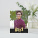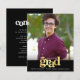 ¡Siente orgullo, regocíjate y muestra este hito de tu graduado favorito! Envía esta impresionante, simple, moderna y personalizada invitación de anuncio de presupuesto para un evento inolvidable. Tipografía gráfica en falso dorado y un icono de gorra, tipografía blanca y una banda negra superpuesta en una foto de tu elección. Personaliza el texto personalizado con el nombre de tu graduado, escuela y año de graduación. En la parte posterior, agrega tu nota personal, la próxima escuela a la que asistirán, información de la fiesta, etc. ¡Garantizado que agregará diversión elegante a su ocasión especial!
