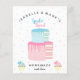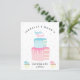 Un lindo presupuesto de género revela la invitación. En la parte delantera del texto de la tipografía se puede leer Los nombres de la pareja, Revelación de Género, hecho en casa con amor. El texto de la Revelación de Género se adjunta dentro de una tarta, en una torta hecha de dos niveles en azul y rosa. El texto casero con amor está flanqueado por dos quequitos de azul y rosa, sobre un fondo de pastel azul y rosa espolvorizado. Personalice agregando los detalles del evento al reverso.