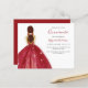 PRESUPUESTO Vestido rojo Quinceanera Invitación a la fiesta **POR FAVOR LEA ANTES DE COMPRAR** Nuestra pequeña gama de papelería de presupuesto mide 4.5" x 5.6" y se ajusta dentro de un sobre A6, que están disponibles en todo tipo de colores en su tienda de papelería local o puede añadir uno blanco a su pedido antes de realizar el pago. El material de cartón es blanco brillante con un acabado semi-brillante y peso de 110 libras, lo cual es adecuado para invitaciones. NO le aconsejamos que elija la opción de papel satinado ya que es un papel mucho más delgado de 80lb, que es más parecido a las páginas de revista que a las de cartón. Si prefiere una invitación clásica de tamaño 5x7 impresa en un material de 120lb con acabado mate, puede transferir este diseño a una tarjeta plana utilizando las opciones de diseño de transferencia. Las tarjetas planas no están dentro del rango de presupuesto, pero usted tiene una mayor variedad de tamaños y opciones de cartón y se envían con sobres. La forma y el tamaño más adecuados para el diseño aparecerán en las opciones de transferencia de diseño. Si realiza cambios en la forma o el tamaño o elige otro producto y el diseño está recortado de alguna manera o no aparece directamente en la página, necesitará usar el servicio de diseño activo para que alguien ajuste el diseño por usted, a menos que se sienta cómodo haciéndolo por usted mismo. No hay ninguna comprobación o intervención manual entre la colocación del pedido y la impresión, por lo que lo que ve en la pantalla es lo que se imprimirá y se le enviará. Con esto en mente, por favor, compruebe tres veces si hay algún error ortográfico o información incorrecta antes de realizar el pedido.