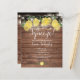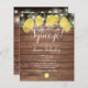 Con una vegetación de limones y luces de cuerda de bonito sobre un fondo rústico de madera, esta divertida invitación de presupuesto para duchas de novias puede ser personalizada con su información especial para eventos. Diseñado por Thisisnotme©