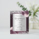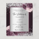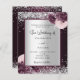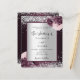 Un fondo burdeos y falso plateado decorado con flores borgoñas y rosas, flores y purpurinas falsos de plata, chispas. Personalice y agregue sus nombres y detalles del boda. Cartas negras.