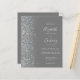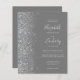 El borde izquierdo de esta elegante y moderna invitación a la boda incluye un falso borde purpurina plateado. El texto del personalizable combina la escritura a mano gris plateado pálido, el copperplate y las fuentes cursivas en un fondo gris. El reverso proporciona espacio para los detalles del boda sobre un fondo gris sólido, junto con un código QR que los huéspedes pueden explorar para visitar su sitio web y RSVP.