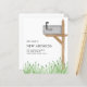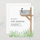Esta invitación de presupuesto móvil permite a familiares y amigos conocer su nueva dirección. Esta invitación de presupuesto está impresa en papel y hay versiones de tarjetas en mi tienda. Está decorado con un buzón de agua y una tipografía moderna. Puedes añadir tu número de casa. Acuarela original © Michele Davies.