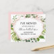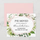 Rosa de oro de eucalipto de ecología verde - Rubor Pink Geometric Modern and Elegant Floral Watercolor Spring I've Moved New Home o New Address cards - incluye tipografía de escritura hermosa y elegante con vegetación botánica moderna para la celebración especial New Home o New Address.