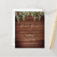 Invite a sus amigos y familiares a su ducha de novia con este estilo rústico de madera con eucalipto, postales de invitación a la ducha de novia elegantes pero casuales. Estas tarjetas postales de invitación a bodas de presupuesto deben enviarse por correo como postales sobredimensionadas, por lo que pueden incurrir en cargos de franqueo estándar, pero no necesitan un sobre o una etiqueta de dirección de retorno. Personaliza con nombre, fecha de la ducha de novia, ubicación y cualquier otra información. Añadir sitio web y cualquier otra información en la parte posterior. Estas originales invitaciones a una ducha de novias causarán una impresión duradera. DERECHOS RESERVADOS © 2020 Judy Burrows, Black Dog Art - Todos los derechos reservados. Invitación a la ducha de novia de la vegetación de la madera rústica del presupuesto