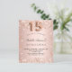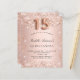 Para una elegante Quinceañera, fiesta de cumpleaños número 15. Fondo subió de gradiente dorado. Decorado con rosa de oro falso polvo purpurina. Personalice y agregue un nombre y detalles del fiesta. El nombre se escribe con un guión de estilo con letras a mano. El número 15 se escribe con un tipo de letra de estilo globo.
