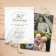 Con delicada confeti de corazones de amor dorados. Personalice con la información de su aniversario de oro de cincuenta años en letra dorada chic y 2 fotos especiales en el reverso. Diseñado por Thisisnotme©