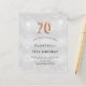 Una invitación moderna, elegante y glamurosa para una fiesta de cumpleaños número 70. Un fondo falso plateado, decorado con polvo purpurina. Personalice y agregue su nombre y detalles del fiesta. El número 70 está escrito con un tipo de letra, guión, de estilo de globo dorado subió.