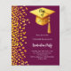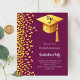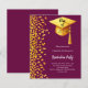 Una moderna y elegante invitación a la fiesta de graduación. Un fondo burdeos decorado con un falso confeti de oro y una gorra de graduación dorada con tassel. Personalice y agregue un nombre y detalles del fiesta. Texto blanco. 1 hoja = 1 borde impreso de invitación al borde.