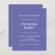 Una alternativa de presupuesto con buen valor en un tamaño más pequeño de 4,5 x 5,6” semi brillo 110lbs de peso, que es de un grosor similar a una postal (sin embargo no es adecuada para usar como postal). POR FAVOR TENER EN CUENTA que hay UNA invitación por hoja. Simple Invitación para Tarde de Boda de color azul. Sobre un fondo de azul violeta pervinca. Fácil de personalizar el texto a sus detalles y cambiar los colores de la tipografía y el fondo en cada lado si lo desea se puede cambiar a cualquiera de su elección a través de la opción personalizar más.