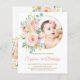 Lámina Invitación de primer cumpleaños y flores rosadas d