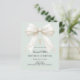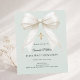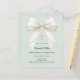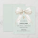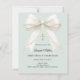 Un suave fondo verde salvia pálido, decorado con un gran lazo con perlas y una cruz dorada. Personalice y agregue un nombre y detalles.