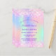 Una quinceañera femenina y femenina, 15ª invitación a la fiesta de cumpleaños. En el frente: fondo de color arcoiris y holográfico en color morado, rosa, verde menta, oro rosa. Decorada con purpurinas falsos de color rosa oscuro, chispas. Personalice y agregue un nombre y detalles del fiesta. El nombre está escrito con un guión de estilo con letras a mano, letras de color púrpura.