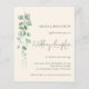 Una alternativa de presupuesto con relación calidad-precio en un tamaño más pequeño de 4,5 x 5,6” semi brillo de 110lbs de peso, que tiene un grosor similar al de una postal (sin embargo, no es adecuada para usar como postal). POR FAVOR TENER EN CUENTA que hay UNA invitación por hoja. Invitación de Presupuesto para Recepción de Boda de Eucalipto Marfil Verde Salvia. Estilo botánico minimalista para invitar a sus invitados de la recepción de la boda por la noche. Un conjunto de letra manuscrita para Recepción de Boda y el resto del texto que puede personalizar fácilmente con un fondo marfil en la parte delantera y verde salvia en la parte trasera. Una elegante rama de hojas de eucalipto de acuarela de salvia corre por el lado izquierdo.