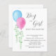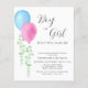 ¿Estás planeando una fiesta de revelación de género? Invita a familiares y amigos a tu celebración con esta encantadora invitación económica. Cuenta con globos de acuarela rosas y azules con eucalipto y tipografía de escritura elegante que dice "¿Niño o Niña?". Perfecta para una fiesta de revelación de género en cualquier temporada. Fácilmente personalizable. Acuarela original © Michele Davies.