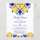 invitación de Talavera azulejo baldosas azules y amarillas vintage mexicana para despedida de soltera económica, invitaciones de despedida de soltera impresas asequibles, patrón de baldosas azules mediterráneo italiano patrón de baldosas Maiolica griegas tarjetas de invitación para despedida de soltera