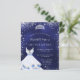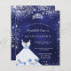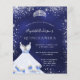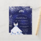 Una invitación moderna, elegante y glamurosa para una fiesta de 15 años en Quinceañera. Un fondo azul de medianoche con polvo falso purpurina de plata, una tiara y un vestido. El color azul es desigual. El nombre está escrito con una escritura de estilo con letras a mano moderna. Personalice y agregue los detalles de su fiesta.
