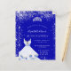 Una invitación de moda y glamurosa para una fiesta de 15 años en Quinceañera. Un fondo azul real con polvo falso purpurina de plata, una tiara y un vestido. El nombre está escrito con una escritura de estilo con letras a mano moderna. Personalice y agregue los detalles de su fiesta.