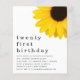 Yeso Girasol Amarillo Veintiuno Una alternativa económica más pequeña de 4,5" x 5,6". Disponible en un ALMACENAMIENTO DE TARJETAS SEMI GLOSS 110 lb o en un SATIN FINISH DE PAPEL DELGADO DE 80 lb. Los sobres son un extra opcional. .Estilo rústico con un girasol amarillo gigante arriba a la derecha y la cabecera es grande abajo en una elegante minúscula con los detalles en la parte inferior. Personaliza fácilmente el texto a tus propios detalles.