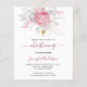 Por un elegante bautizo, bautismo, celebrando a una niña. Un fondo blanco moda. Decorada con flores rosas y blancas, rosas y una falsa cruz de oro. Personalice y agregue el nombre del niño y los detalles. Letras negras y rosas.