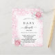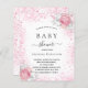Una moderna y elegante ducha de bebé, celebrando a una niña. Un elegante fondo blanco decorado con purpurinas falsos rosas, chispas y flores. Personalice y agregue un nombre y detalles del fiesta. Letras de color negro.