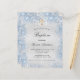 Un bautismo moderno y elegante, celebrando a un bebé. Fondo de aspecto metálico de color plateado falso decorado con chispas de imitación azul y una cruz dorada. Personalice y agregue un nombre y detalles del fiesta. Letras de color negro.