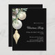 Para un fiesta Navidad con familia y amigos. Un elegante y moderno fondo negro. Decorada con baudias blancas y doradas, con un poco de vegetación y un cono de pino. Personalice y agregue los detalles. 1 hoja = 1 borde impreso de invitación al borde.