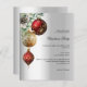 Elegante invitación de la fiesta de Navidades de negocios invita a su equipo a celebrar la temporada de vacaciones con esta elegante y moderna invitación a la fiesta de Navidades. Con un elegante fondo falso plateado, el diseño está bellamente decorado con baubles de color rojo y oro festivo, vegetación y un cono de pino para un toque clásico. Personalízalo con los detalles del evento de tu empresa para crear una invitación profesional y sofisticada, perfecta para tu reunión de vacaciones corporativas. 1 hoja = 1 borde impreso de invitación al borde.