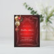 Para un fiesta Navidad con familia y amigos. Decorado con un blanco y simple arco dibujado a mano, baubles rojos y dorados. Personalice y agregue los detalles. Navidades fiesta con corazón. Fondo de degradado rojo. 1 hoja = 1 borde impreso de invitación al borde.