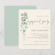 Una alternativa de valor por dinero BUDGET en un tamaño menor de 4,5 x 5,6" de peso semibrillante de 110 libras, que es de espesor similar al de una postal (sin embargo, no es adecuado para usar como postal). POR FAVOR, TENGA EN CUENTA QUE HAY UNA invitación por hoja. Invitación del Partido de Compromiso de Marfil con Guión de Eucalipto del Presupuesto. estilo botánico minimalista, con el follaje verde de salvia acuarela en el lado izquierdo y texto a la derecha sobre un fondo de marfil en el frente y fondo de salvia en la parte posterior. Un guión manuscrito para Engagement Party y el resto del texto que puede personalizar fácilmente.