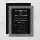 Invitación del Partido de Compromiso Negro, Purpurina de Plata Plata Presupuestaria NOTA Existen dos opciones de papel para este tamaño (4,5 x 5,6") en el rango de presupuesto. Para este producto, recomendaría en gran medida el semi brillo que es una tarjeta de 110 gsm, similar en grosor a una postal. La opción Satin es un papel mucho más delgado 80gsm. El valor predeterminado se establece en semi brillo. Los colores y el tipo de letra se pueden cambiar a través del menú de edición.